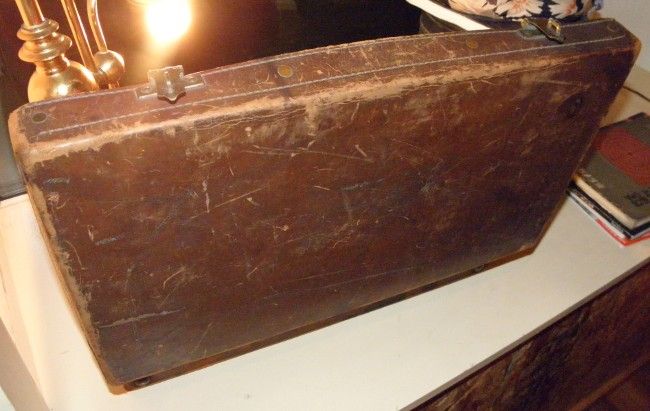 皮のカバンと天秤はかり