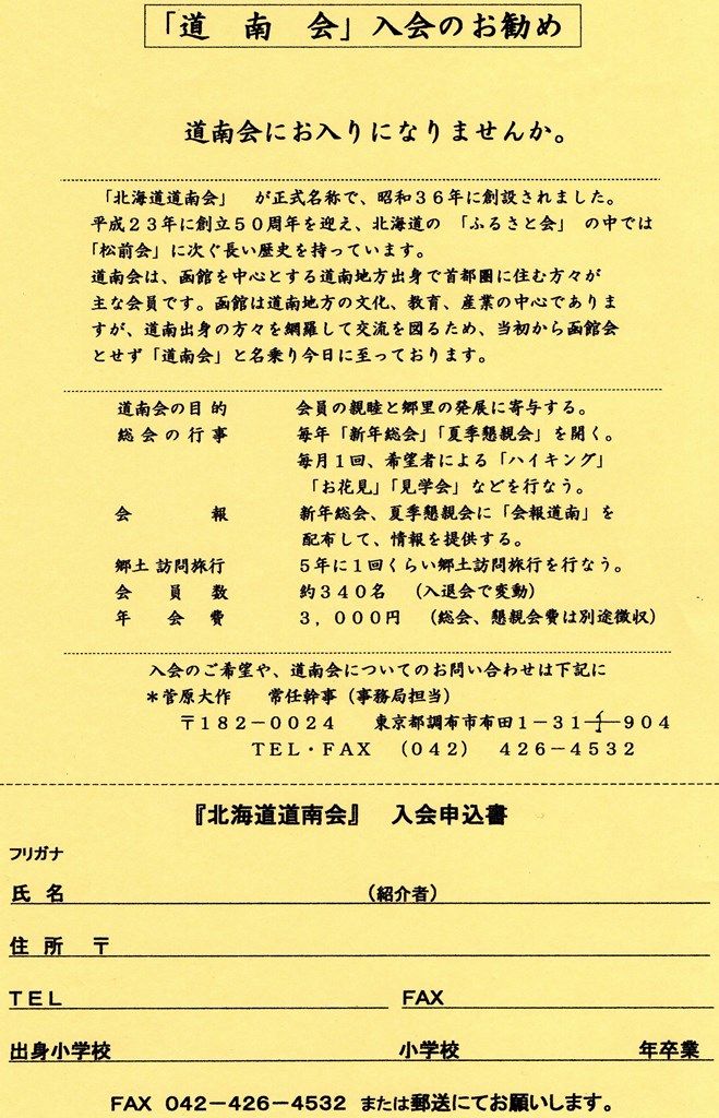 道南会さんから連絡がありました